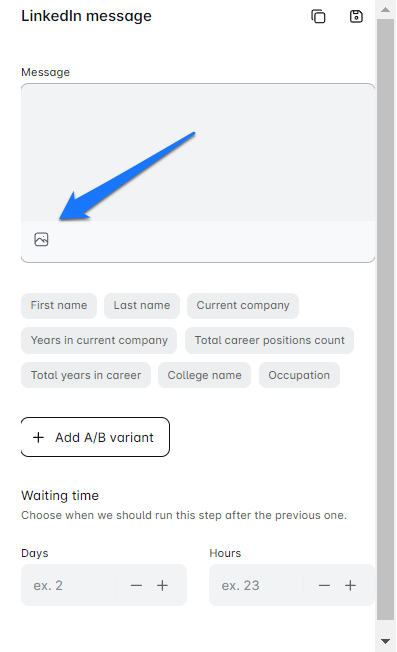 - For email messages, choose where to insert your image or GIF. For LinkedIn messages and InMails, Netgrade digital GmbH will place your personalized images and GIFs at the bottom of the message.