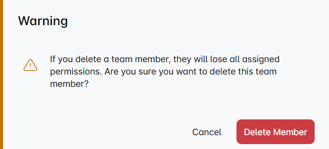 ⚠️ Deleting a team member will remove all their assigned permissions. It’s a big change, so be sure you’ve considered everything before taking action. 📌