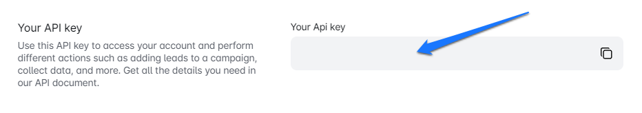 This is where your API key will be shown: